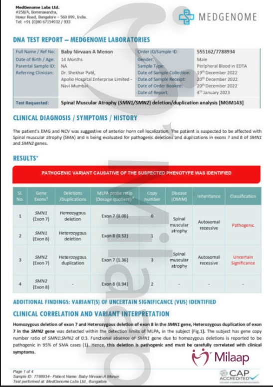 For Novartis to approve Zolgensma therapy, a child must not reach 2 years – as this would negatively affect the effectiveness and the safety of the treatment. Nirvaan is currently 15 months old (as of January 2023), thus we have a fight against the clock. This is the reason we have set up this page. We do not have the means to make up anywhere near the required amount ($2.1 million dollars/17.3 crores rupees) in this time frame and need your help.