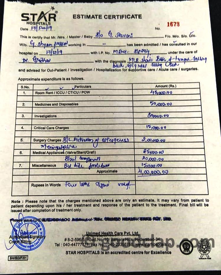 I used to work as a chef in Vizag, after which I bought a small restaurant but now I had to sell my restaurant and have become an Ola Bike driver in Hyderabad to save my first and only child Aushi. Aushi was born post complete term as the mother was not getting labour pains even after full 40 weeks of pregnancy. In the process of delivering via Caesarean at a small scale hospital near the parent’s house, the baby swallowed the Amniotic Fluid with Meconium. This led to difficulty in breathing and infection; she was rushed to King George Hospital (KGH) in Vizag where she was in incubator for 39 days. On the 28th day while performing a 2D Echo she was diagnosed with 2 holes in the heart. The doctors at KGH couldn’t treat this ailment, and no hospital in AP could take this up. So the baby was rushed to Satya Sai Sanjeevani Heart Center in Raichur, but even they couldn’t take this up. Until now I was trying to get treatment in trust/foundation hospitals, as we can’t bear the cost of private hospital. But, after the trust hospitals gave up, we approached Star Pinnacle Hospital, the doctors initially said that they can treat and gave and estimate of Rs. 10 lakhs, we tried all means and arranged about Rs. 9 Lakhs and got Rs. 1 Lakh from CM Relief fund. But after trying a couple of times the Star Pinnacle hospital said it can’t do the surgery as the baby is very fragile. They referred the case to Star Children Hospital, Vizag. I again rushes to Hyderabad, where they were given an estimate of Rs. 20 lakhs, with nowhere else to go, I sold my small restaurant, took loans at high interest and arranged Rs. 20 Lakhs and Aushi was operated upon to close the two holes in the heart. But she required more surgeries to set the windpipe issue where a maxillofacial surgery needs to be performed for her to breathe properly, this will cost Rs. 4 Lakhs and the weekly expenses are about Rs. 5000. I am looking for your help to raise these amounts to save baby Aushi. I have taken up the job of an Ola Bike Driver in Hyderabad and is unable to raise any loans further due to continuous lockdown by the Government.