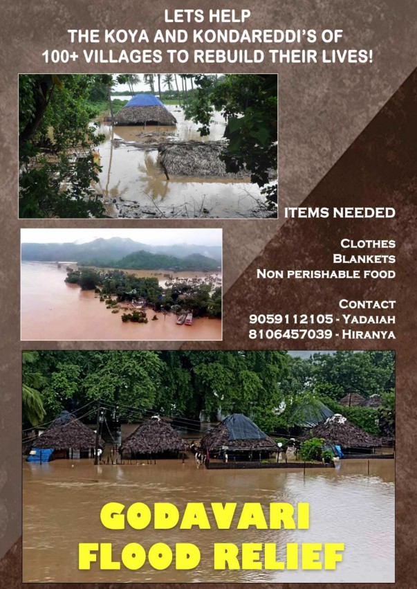 The recent floods have devastated thousands! among all, the Koya and the Kondareddi tribes living on the banks of the Godavari in the East-West Godavari district (AP) right up to adjoining areas of Bhadrachalam have suffered a severe blow. Nearly 1.5 lakh people residing in 7 manuals namely VR Puram, Chinthur, Kunavaram, Kukunoor, Yetapaka, Devipatnam, and Rampachodavaram have lost everything!