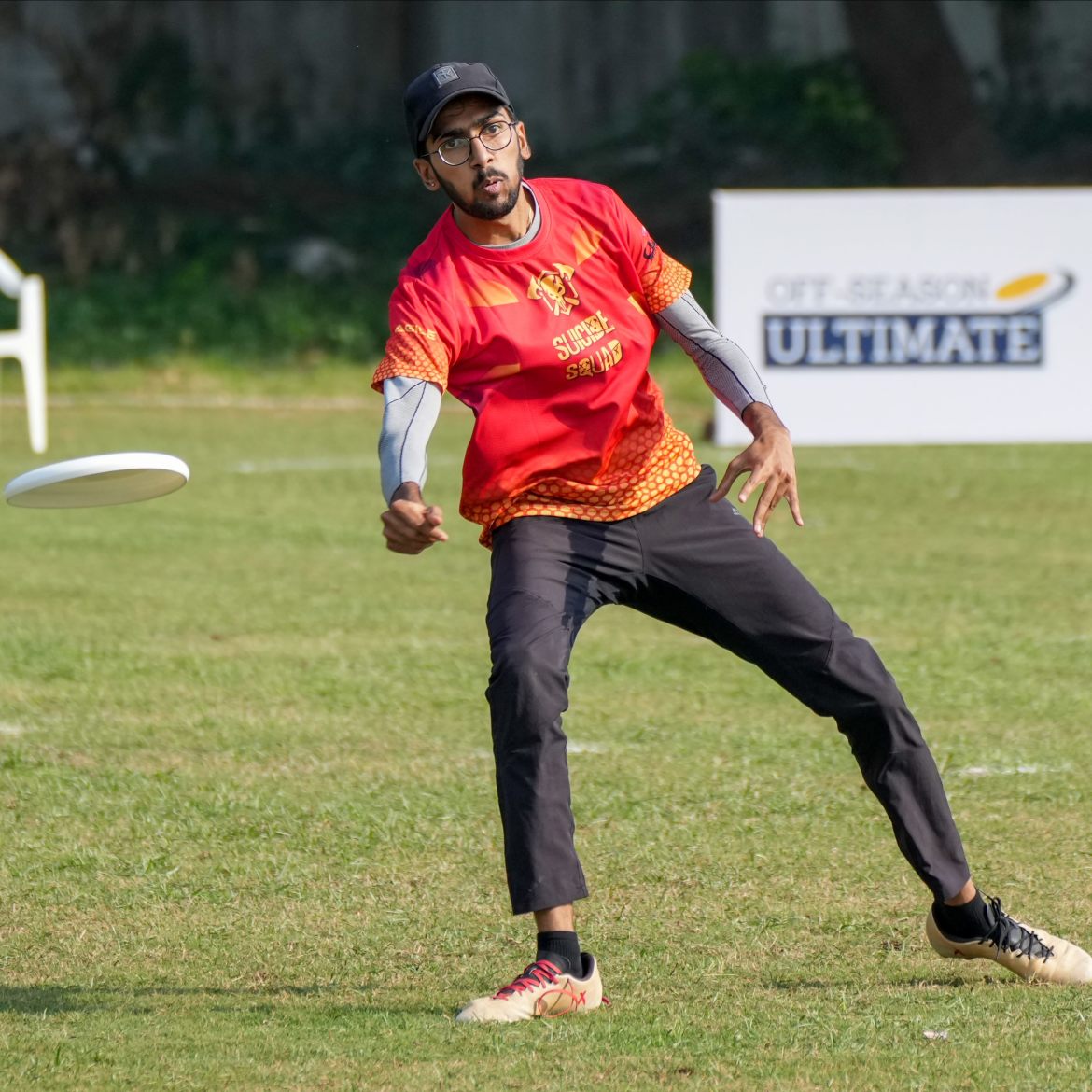 In the UPAI national championship series (2022-23), my club team "Learning to fly" placed in the top eight in more than twenty-four club team of the country in which I competed. This was my third attempt at national selection, and I succeeded in getting a position in Team India Open division competing at AOUGC'23. In the past, I have also been shortlisted for final tryout for team India participating at WFDF WU24(2018), and AOUGC(2019).