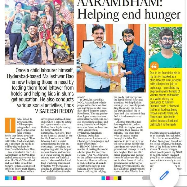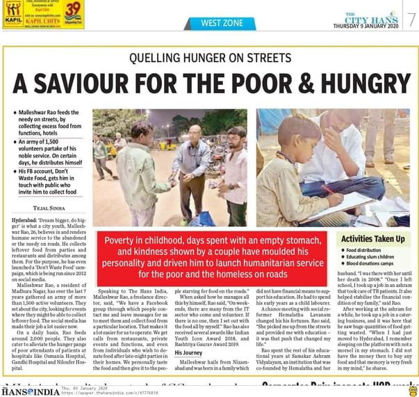 Malleshwara Rao, and his organization—Don’t Waste Food collects food from around the city and feeds the poor. On a daily basis, Rao feeds around 2,000 people in normal times.