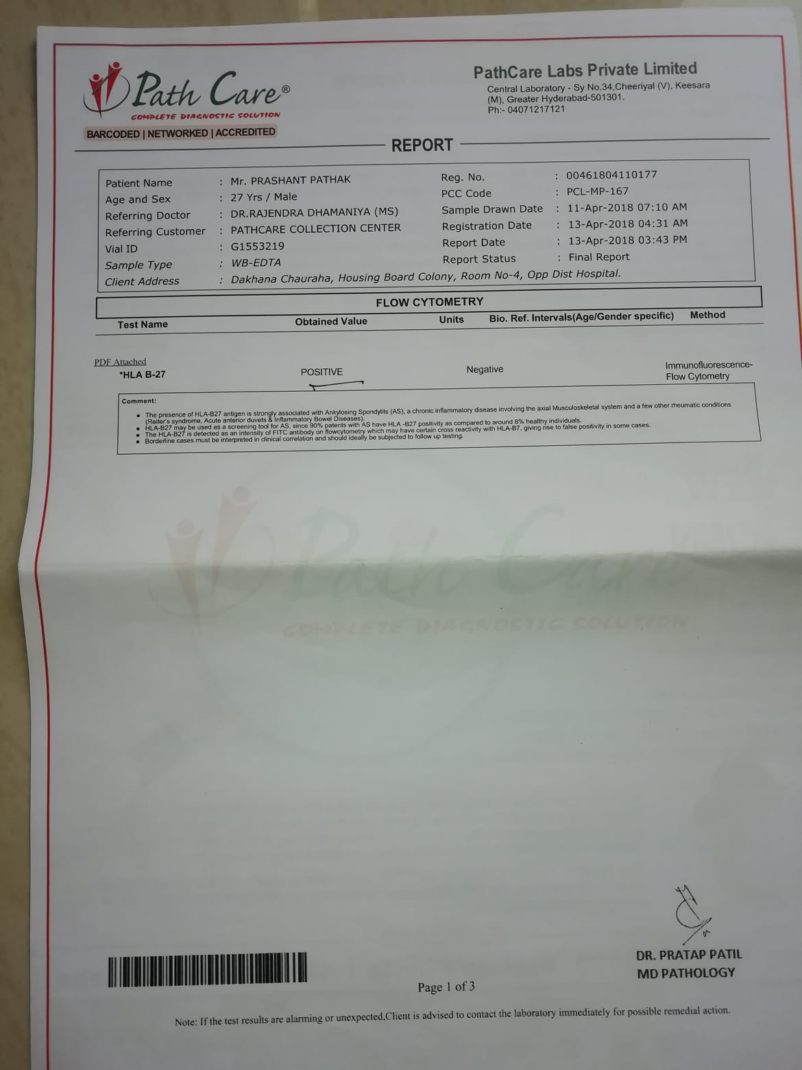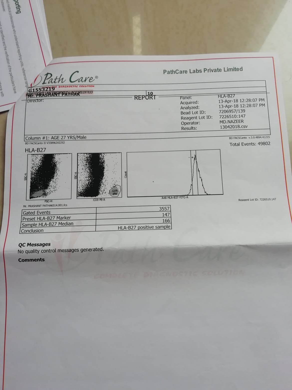 HLA B-27 report :-