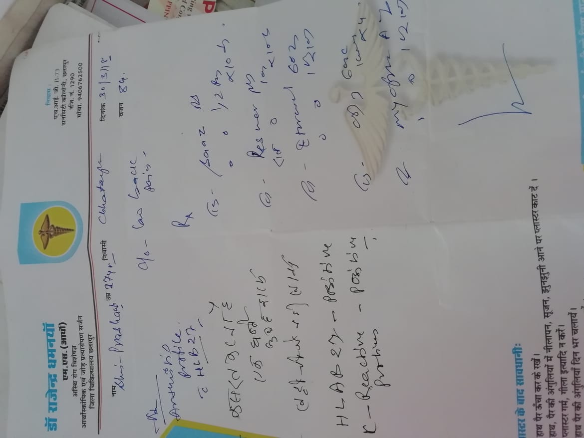 I am HLA B-27 positive, suffering from a chronic/auto immune disease of ankylosing spondylitis and Reactive Arthritis from last 10 years due to which I regularly bear a immense pain in my hip and knee joints and can't even stand/sleep or walk properly.