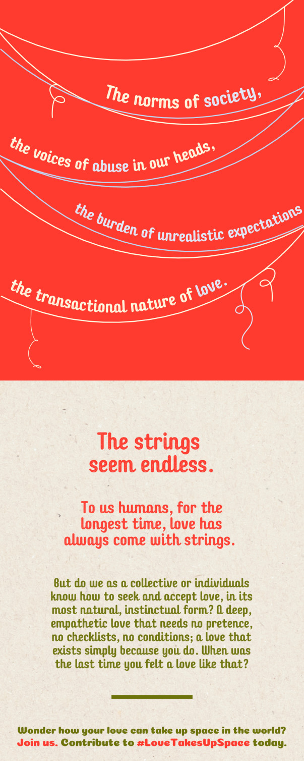 We are Taking Up Space, an organisation based out of India, where we design and facilitate inner work experiences. What began as a virtual session to explore identities for about 12 people has blossomed into a movement where we have facilitated 10+ programs for over 600+ participants, with 20 different facilitators through our spaces over the last 2 years.