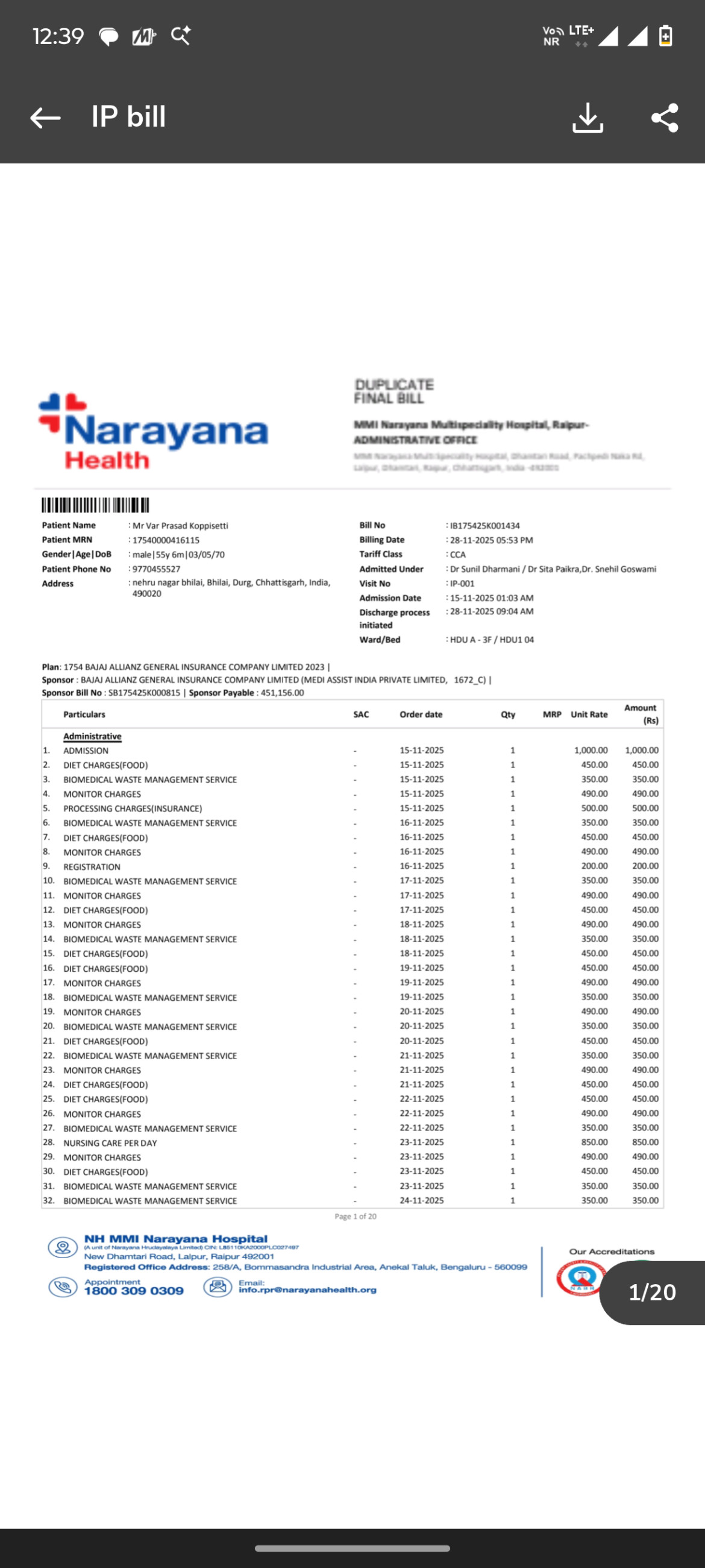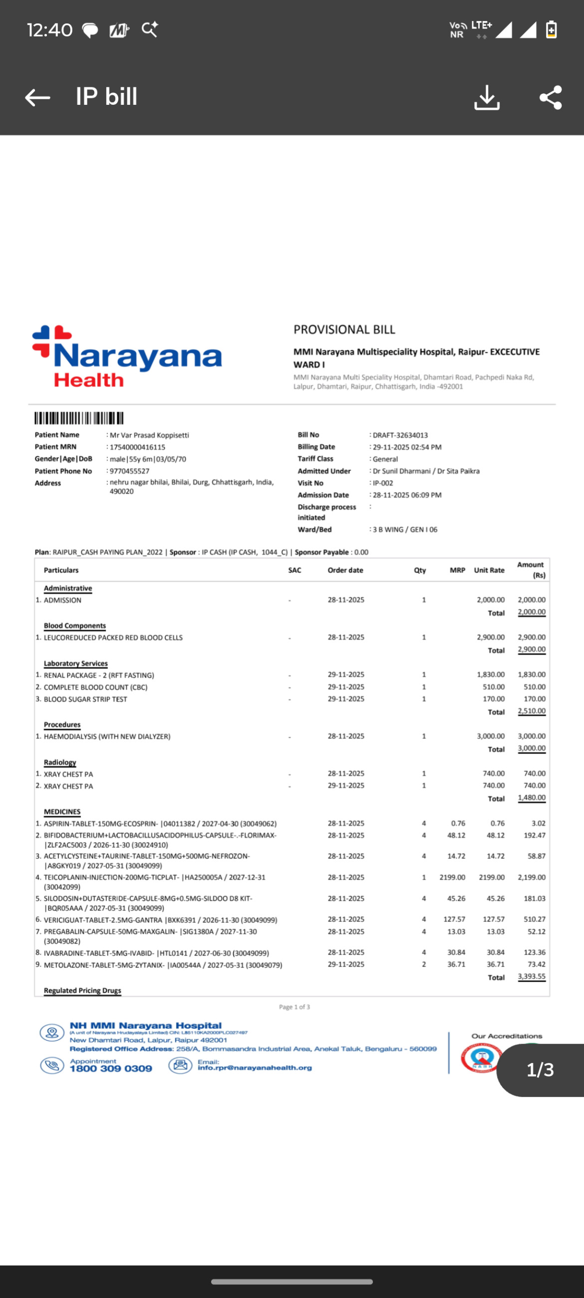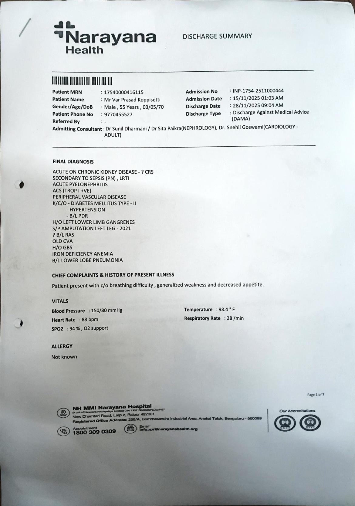 My father is now at Narayana MMI, undergoing dialysis, and new complications are being added every day.