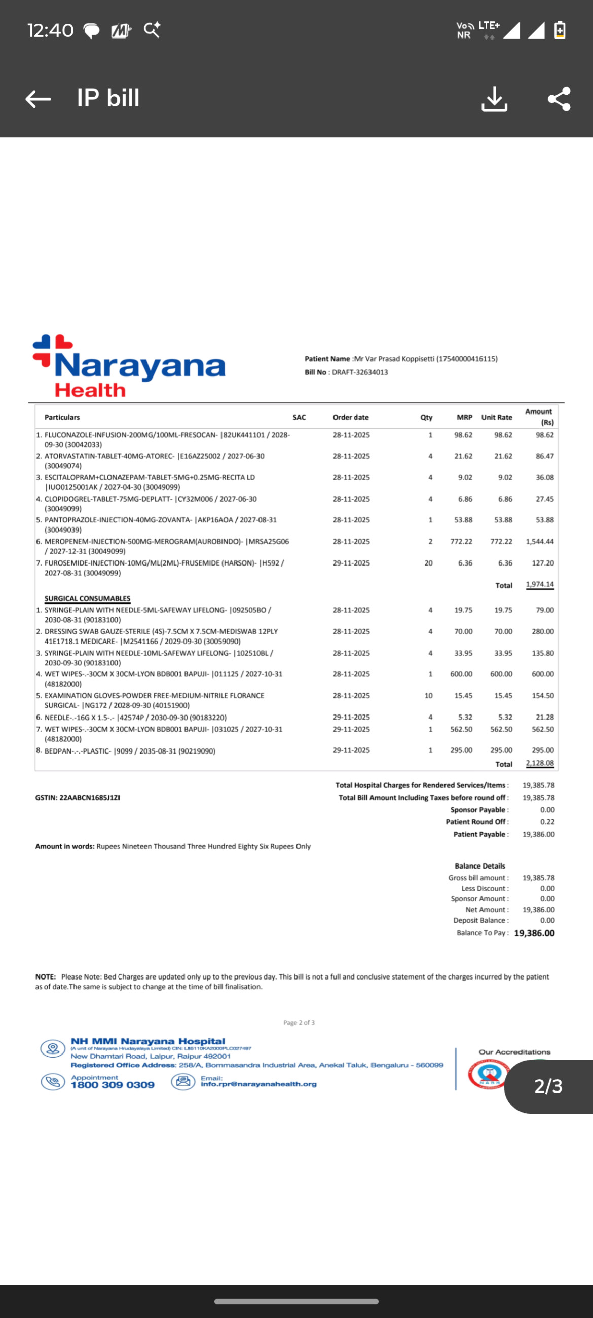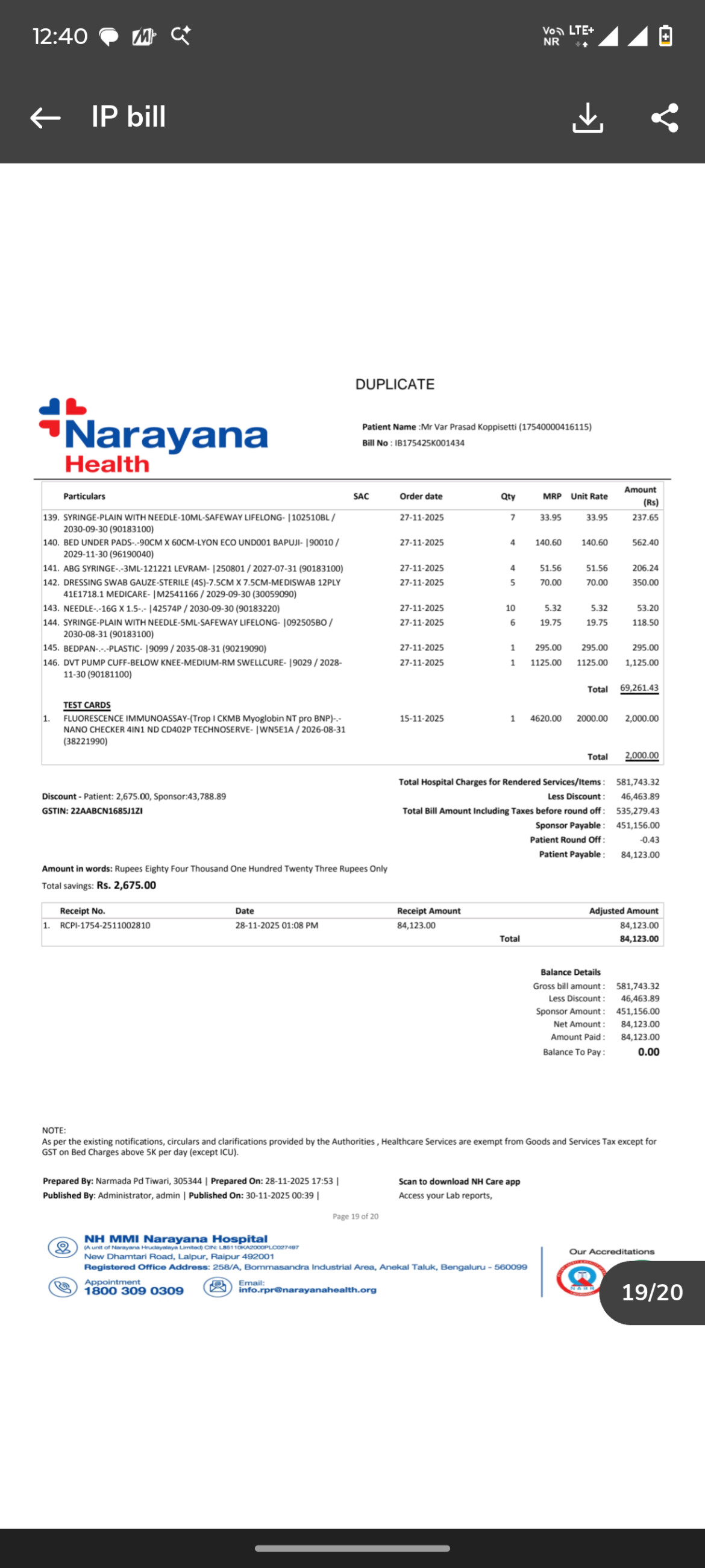 My father is currently admitted at Narayana MMI, and our family is going through the most difficult time of our lives.