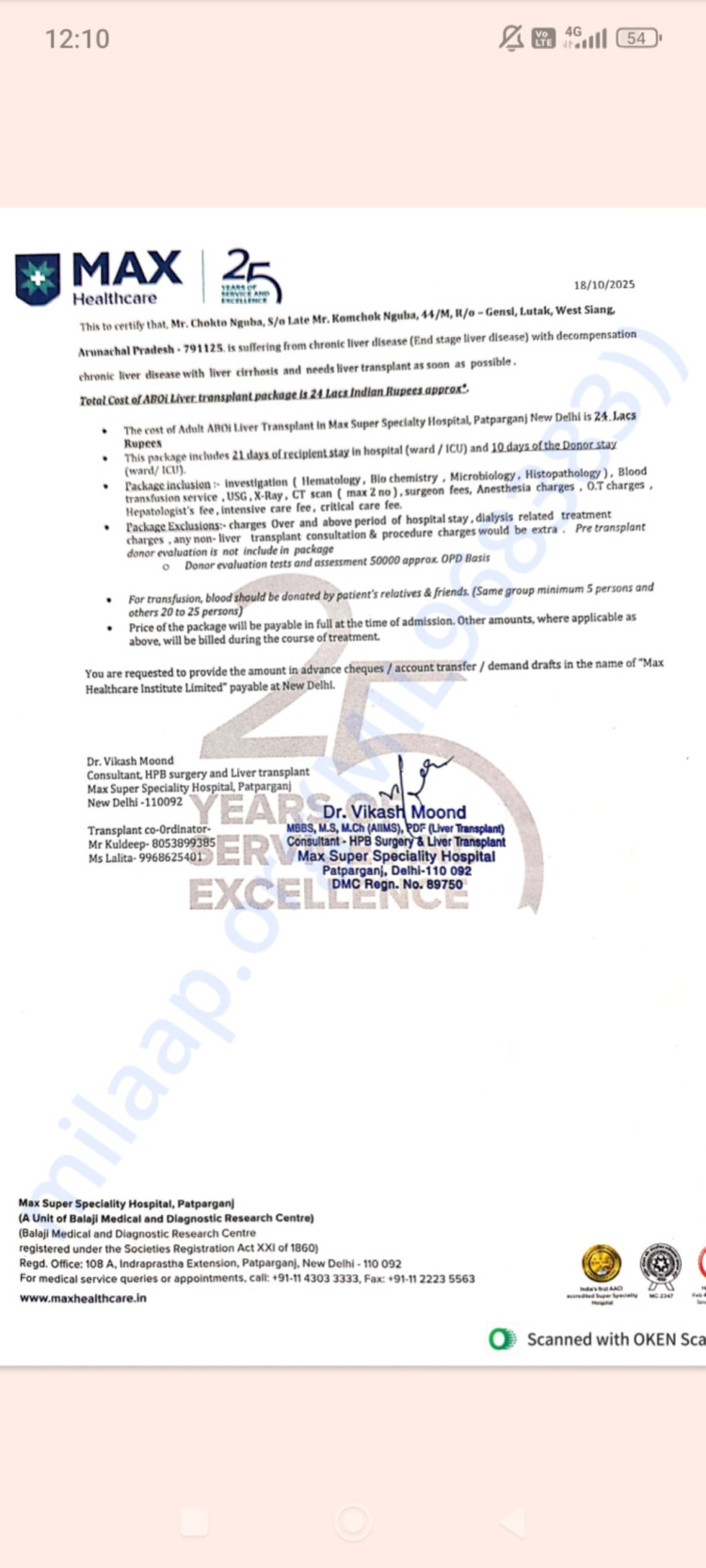 Being treated in Max Super Speciality Hospital, New Delhi, National Capital Territory of Delhi